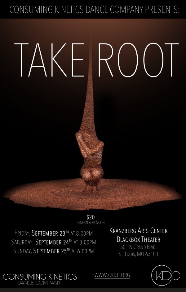 Consuming Kinetics Dance Company presents Take Root Friday, September 23 - 8pm Saturday, September 24 - 8pm Sunday, September 25 - 6pm* *Note, the Sunday performance